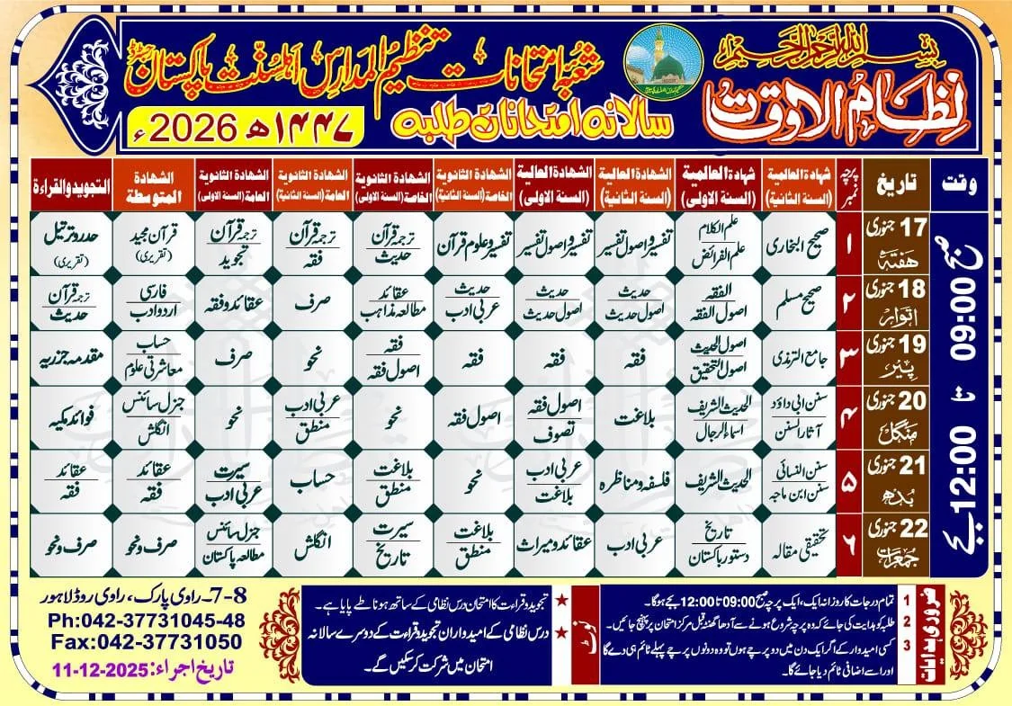 | Exam Body | Tanzeem-ul-Madaris Ahl-e-Sunnat Pakistan |